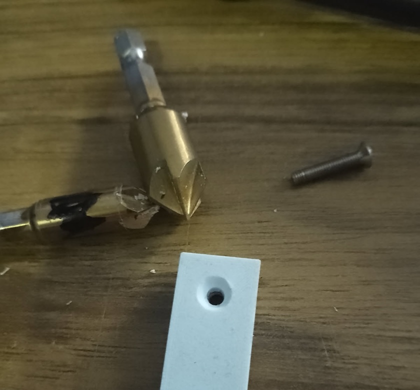 here a picture preparing the pocket for the m3 nut on the screw side .