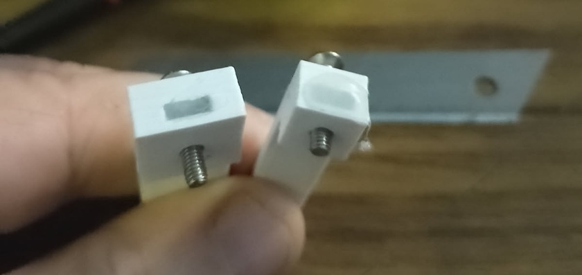 put M3 nut in the pocket , insert a m3 nut and screw and then fill up with a little hot glue . cut off exces hot glue . its a tight fit . to clean the pocket , drill out the hole 3,2 drill and then get the tiny support out .