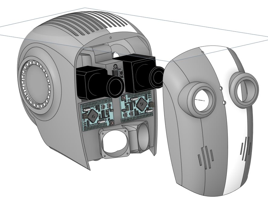 Very cool robot design. I myself would love to print out the head (what size it?) it looks awesome for a few projects
