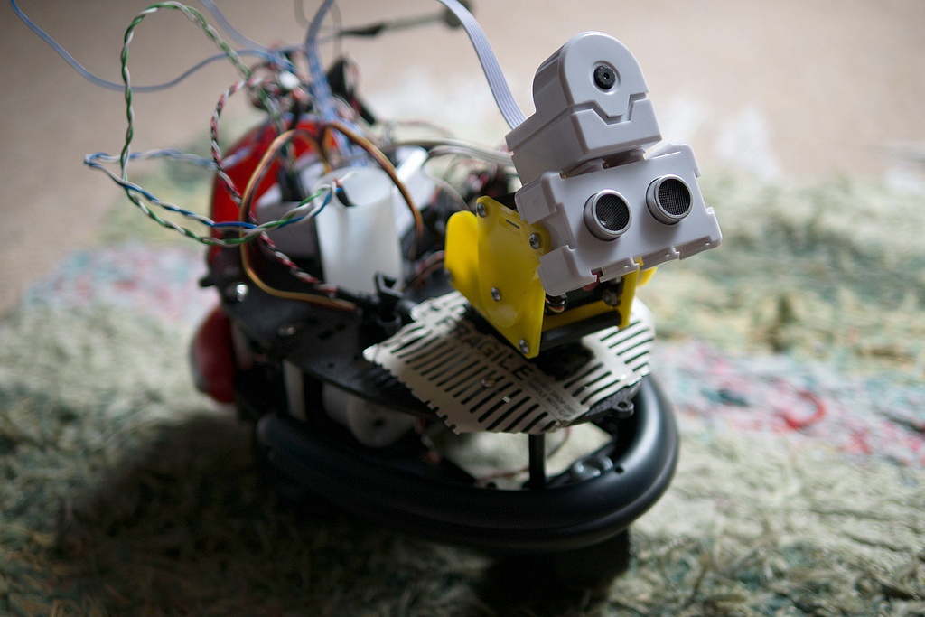 My next goal is to add a sensor on the back so it can back out of situations with confidence and also to have more reliable sensor data so the robot can move more smoothly/organically around room obstacles. It would be great if I could find a way to make the gear motors more quiet too.