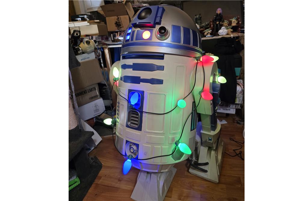 I am starting with an animated R2D2 from Home Depot, he uses a large base that can move him left, right and a little bit forward and back.